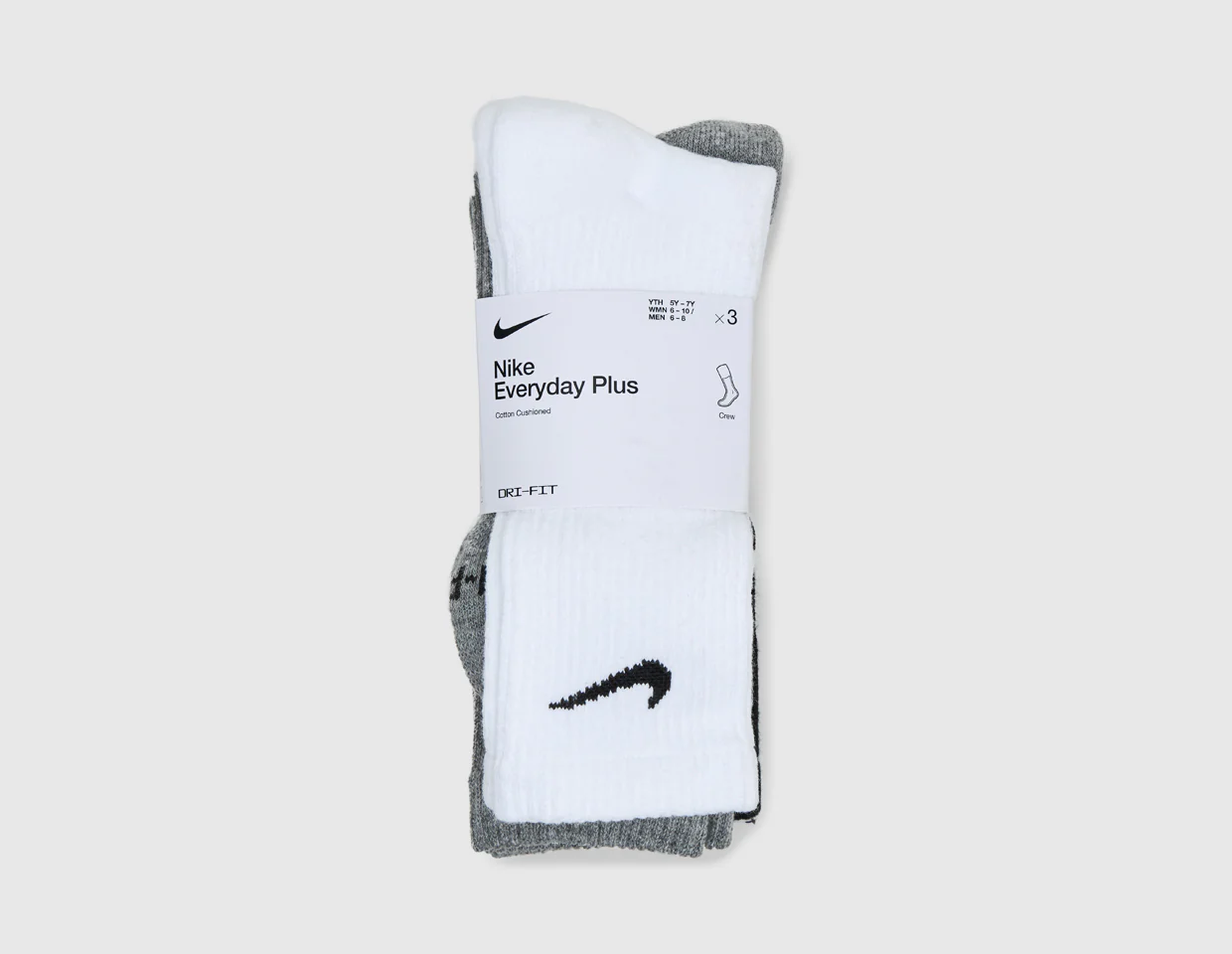 Nike Everyday Plus Cushioned Training Crew Socks (3-Pack) Black / White - Grey