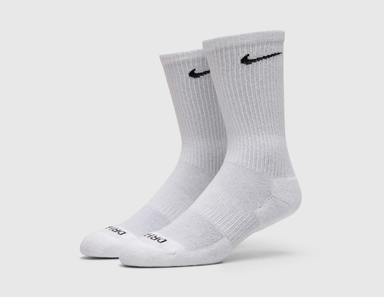 Designed to keep you comfortable throughout the day, the coveted Swoosh brand has released the Nike Everyday Plus Cushioned Crew Socks. These socks arrive with a blended textile construction, paired with Dri-FIT technology to keep you dry and secure. In addition to a knit pattern on top that offers airy ventilation, an arch band paired with a reinforced heel and toe provides snug support. The Nike Everyday Plus Cushioned Crew Socks are decorated with a classic Swoosh just below the cuff for a fresh finish.