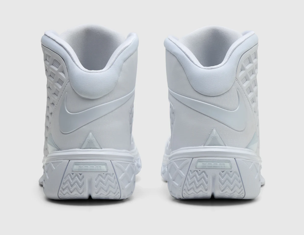 Known for its unique upper and lightweight design, the head-turning Nike Kobe III Protro “Halo" returns, complete with a performance refresh. Mesh underlays form the backdrop for the molded cage overlay, with the lattice patterning extending downwards for a uniform look. Elevating the design is a tonal geometric motif along the heel, adding subtle texture. Underfoot, Cushlon 3.0 and Zoom Air Strobel offer modern comfort. Finishing the look, the Nike Kobe III Protro “Halo" is completed with a rubber outsole, with a black midfoot plate peeking through for contrast.