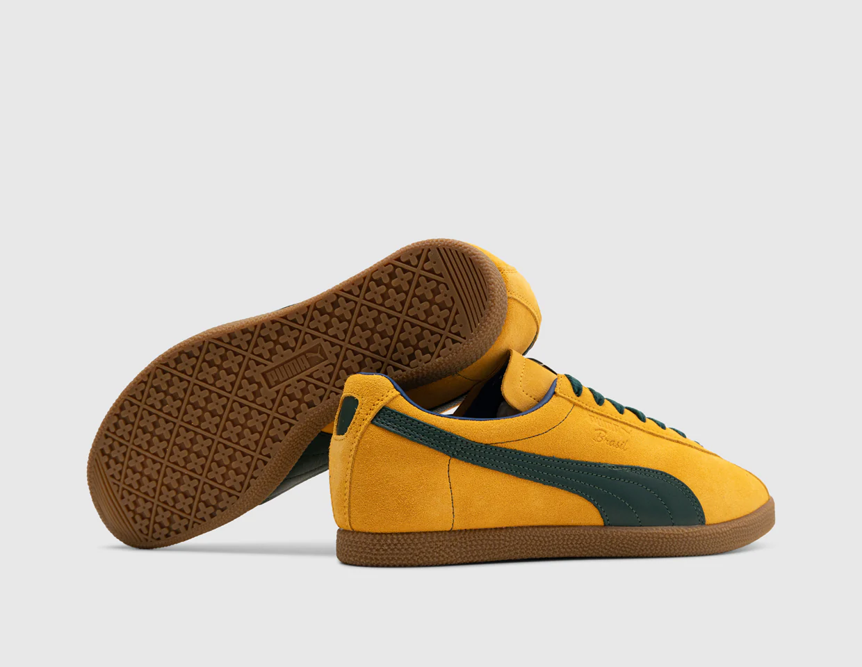 Originally designed for the country's greatest footballer, the PUMA Brasil makes its return from the archives, retaining all its former glory. Formed with premium suede, contrast Formstrip detailing runs along the sidewalls, complementing the contrast lacing. Debossed Brasil branding details adorns the outside, while inside, an OrthoLite insole offers added comfort. Rounded out with a textured gum rubber outsole, the PUMA Brasil perfectly channels retro influences for today's styling.