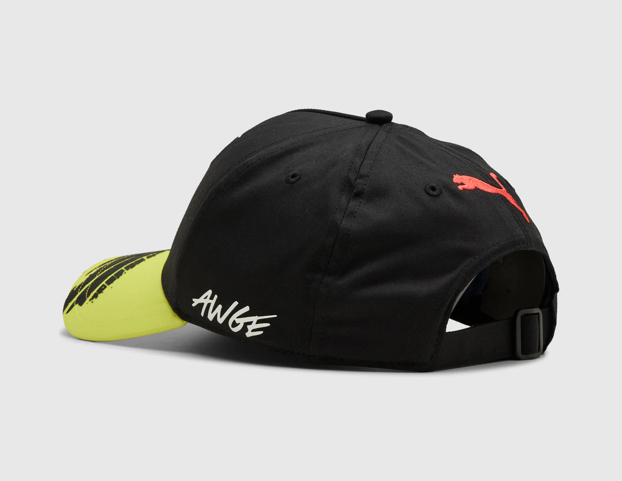 Balancing streetwear influences with motorsport DNA, the PUMA x A$AP ROCKY AWGE Racing Hat perfectly encapsulates the creative partnership between the two. A six-panel silhouette provides the ideal backdrop to co-branded embroidered and printed detailing, offering a unique aesthetic. With a contrasting pre-curved brim to keep the sun out of your eyes, the PUMA x A$AP ROCKY AWGE Racing Hat is completed with an adjustable strapback closure for a personalized fit.